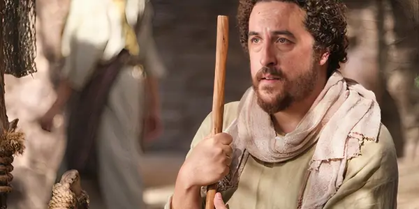 Charakter : In Der ausgewählte, Simon ist ein Fischer, der kämpft, um Steuern zu zahlen, wenn er Jesus kennt. Fasziniert von den Wundern, die Jesus macht, und von der Botschaft der Güte, die sich erstreckt, wird Simon bald zu einer der ersten Jünger . Später benannte Jesus Pedro um, was Roca bedeutet.