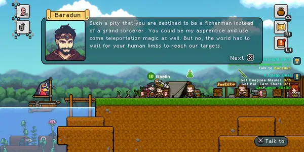 Jedoch Seine Gefährten Freunde NPC können nicht viel tun, um das Böse zu überwinden Trotz Baladuns Aussagen hat Baerin nützliche Adressen und Aktualisierungen seiner Teamkollegen gewonnen. Ob es sich um eine Organisation handelt, um ihren Fischereipfosten auf ein Werkzeug zu verbessern, das für das Fischen sehr unangenehm erscheint und ob Eugene verkauft wird, ein Bayerin -Comic -Hut, der den Fischern neue Stärken bietet, die Stadt wird alles tun, um ihre Freunde zu unterstützen.