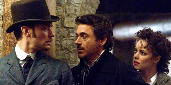Jude Law, Robert Downey Jr. y Rachel McAdams en Sherlock Holmes